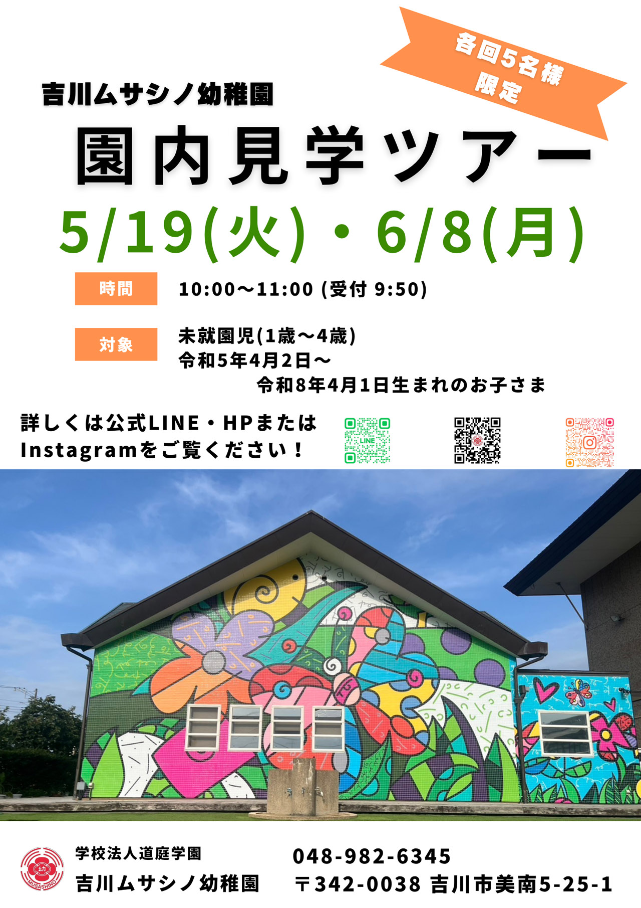 吉川ムサシノ幼稚園では、「令和8年度 満3歳児保育入...