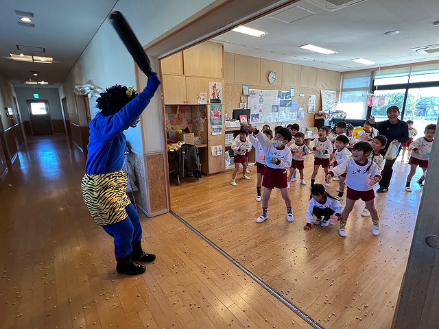 鬼が降参して帰っていくと、子どもたちはほっとした表情に変わり、「やっつけた!」「いっぱい投げたよ!」と誇らしそうに話してくれました。