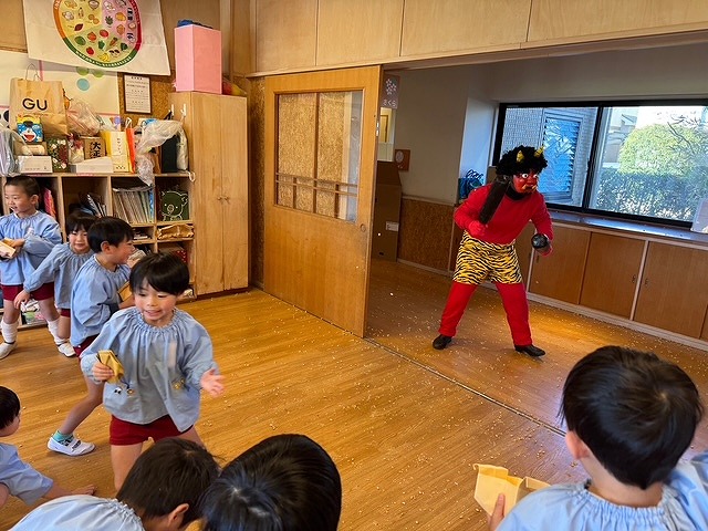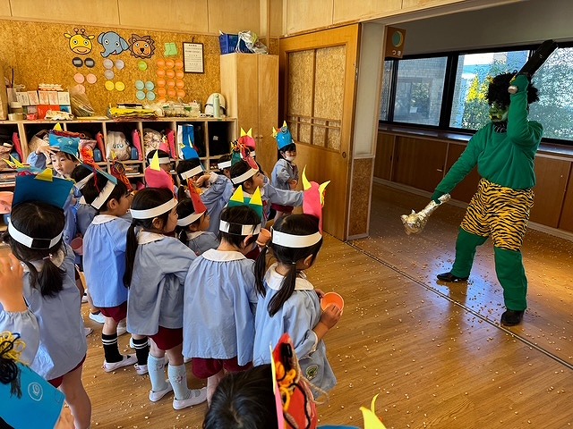 2月3日、幼稚園で節分の集会と豆まきを行いました👹