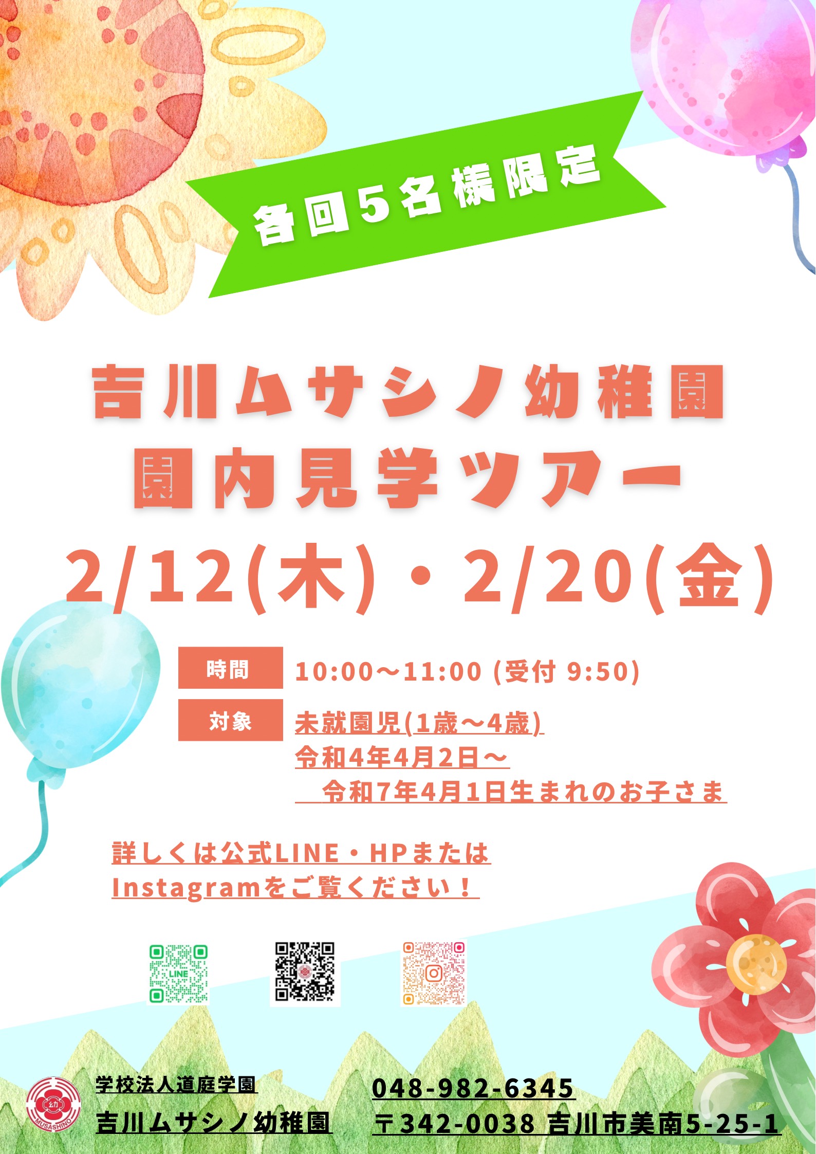 吉川ムサシノ幼稚園では、「園内見学ツアー」を開催いた...
