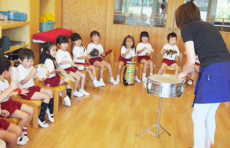 各種楽器の正しい扱い方を覚え、合奏を楽しみ、リトミックや鑑賞などを通して、音楽的感性を磨きます。
