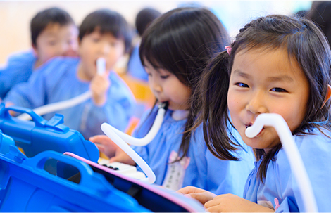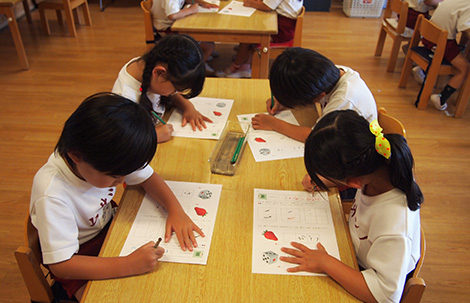 『ほめて、みとめて、はげまして』をモットーに、幼児の学びに合わせた声かけや導き方で、子どもたちの能力を効果的に引き出します。